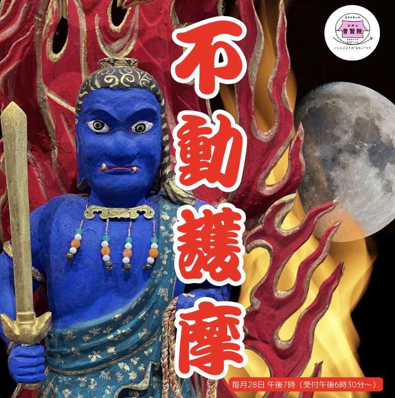 不動護摩のご案内再掲です。 不動護摩 開催日:毎月28日 受付は午後6時30分から 法要は午後7時から まず、受付所で受付をしてください。そこでお布施をお納めください。会費等は設けませんが、お布施としてお気持ちの程お納めいただきますようお願いいたします。 受付所で受付用紙をお渡しするの