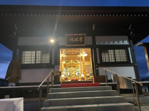 火葬を終えて本堂で通夜のお勤めを。