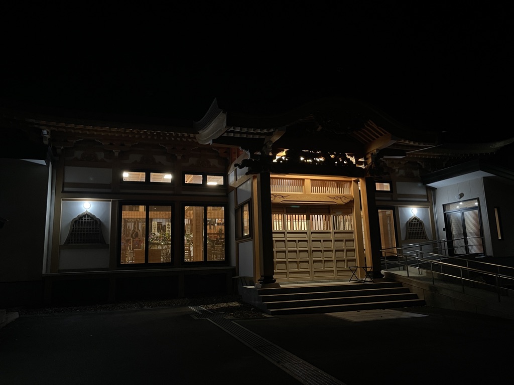 火葬を終えて本堂で通夜のお勤めを。